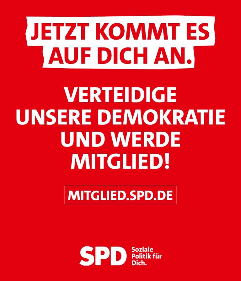 Unsere Gesellschaft lebt davon, dass Menschen sich einbringen und Verantwortung übernehmen. Genau dafür steht die SPD. Wir setzen uns ein für Freiheit, Gerechtigkeit und Solidarität. Und das seit über 150 Jahren. Gerade in Zeiten großer Herausforderungen brauchen wir Menschen, die nicht nur zuschauen, sondern aktiv mitgestalten wollen. Werde jetzt Mitglied in der SPD und unterstütze uns hier direkt vor Ort. Jede Stimme, jede Idee und jedes Engagement kann dazu beitragen, unsere Gesellschaft gerechter und zukunftsfähiger zu machen.